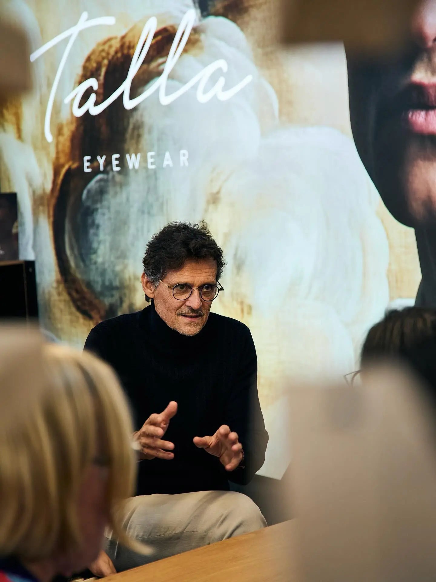 Nascida em 2016, a Talla Eyewear é inteiramente dedicada ao homem que valoriza a elegância discreta. Gualandi imagina os óculos como o acessório máximo da elegância masculina, criando peças que combinam o seu rigor técnico (herança da sua mãe, costureira de alta-costura) com a paixão pela arte, design e pela precisão da culinária.